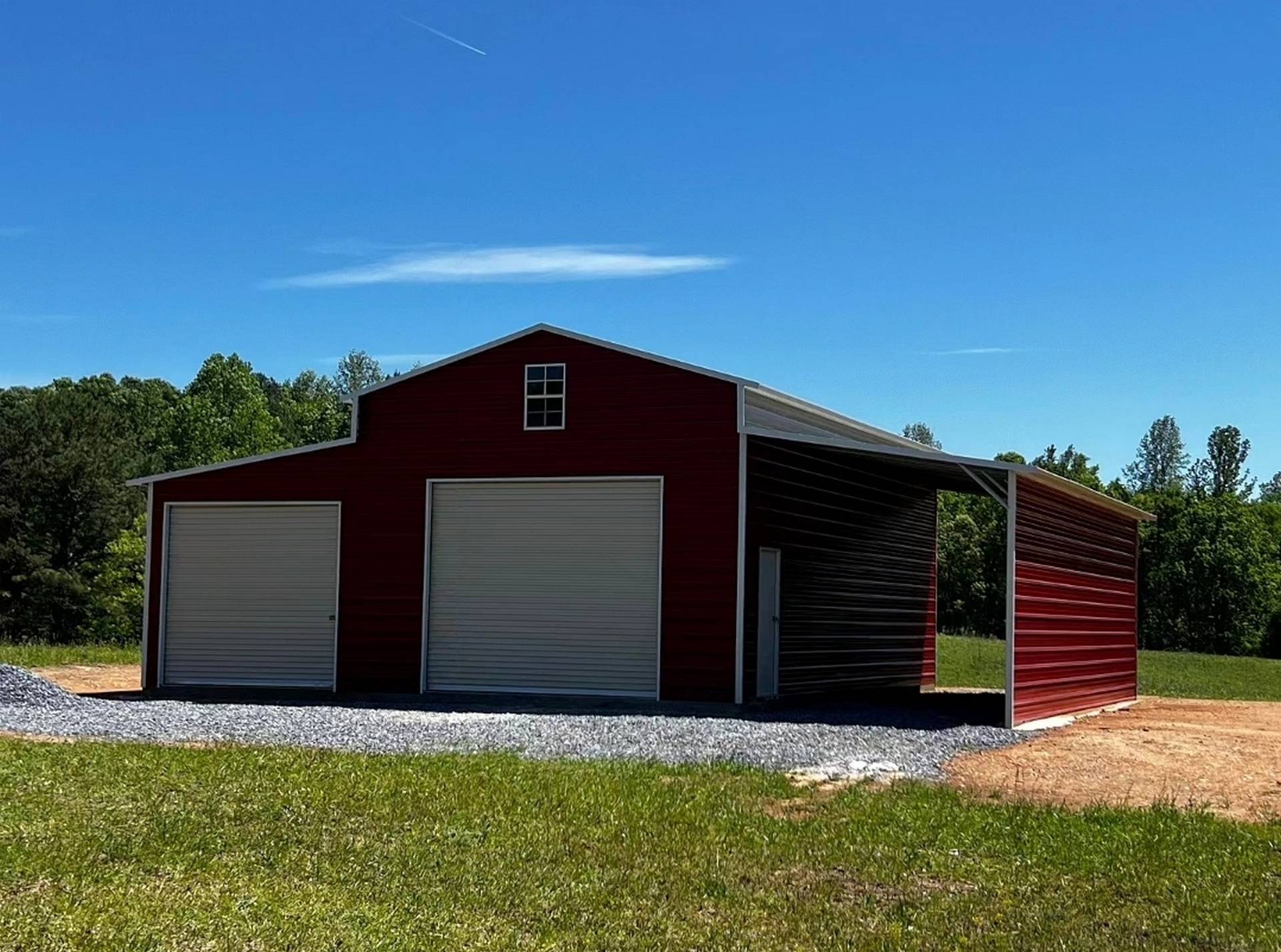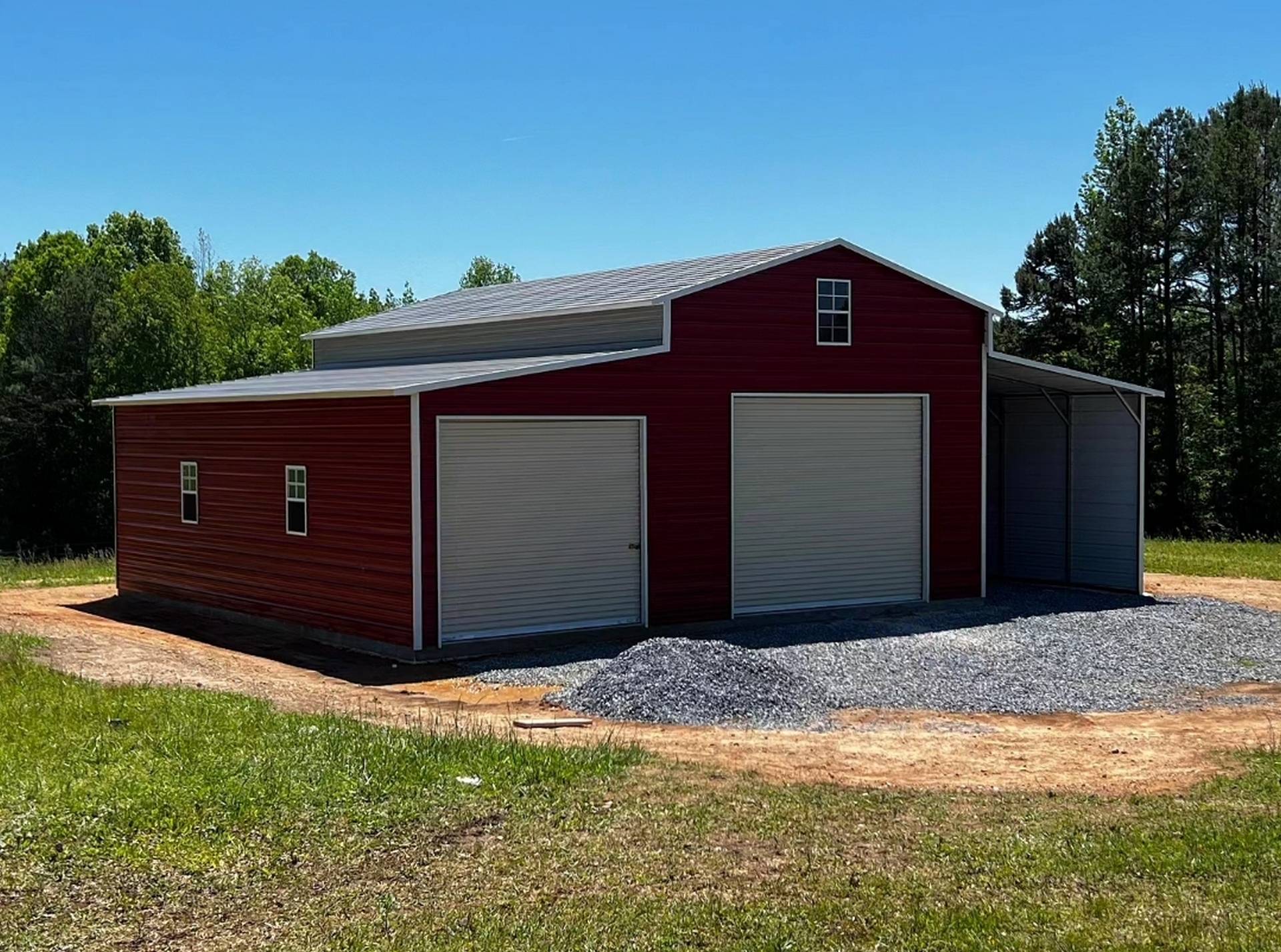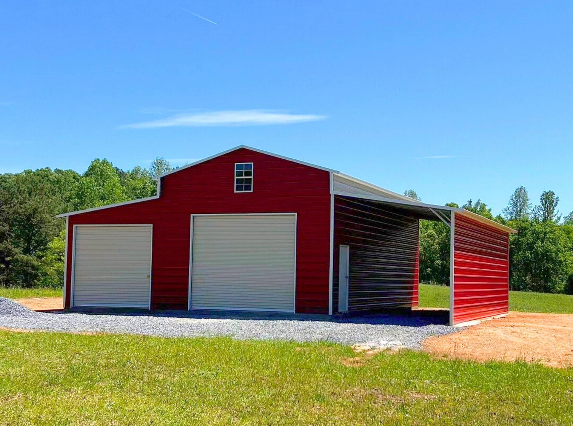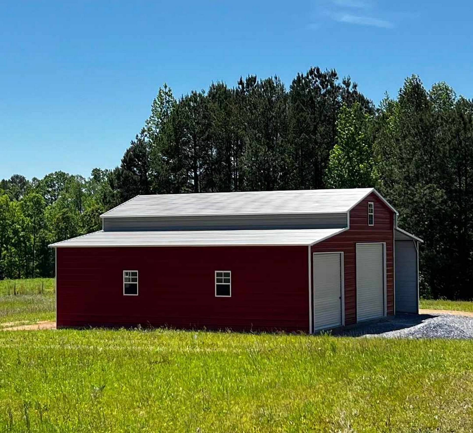 This classic barn with open lean-to is perfect for storing equipment, hay or whatever else you may need for your property. The building features an 18′ wide by 35′ long center, a 10′ wide by 35′ long enclosed lean-to, and one 10′ wide by 35′ long open lean-to. The building also features an 8’x8′ roll up, a 10’x10′ roll up, six windows, and one walk in door.