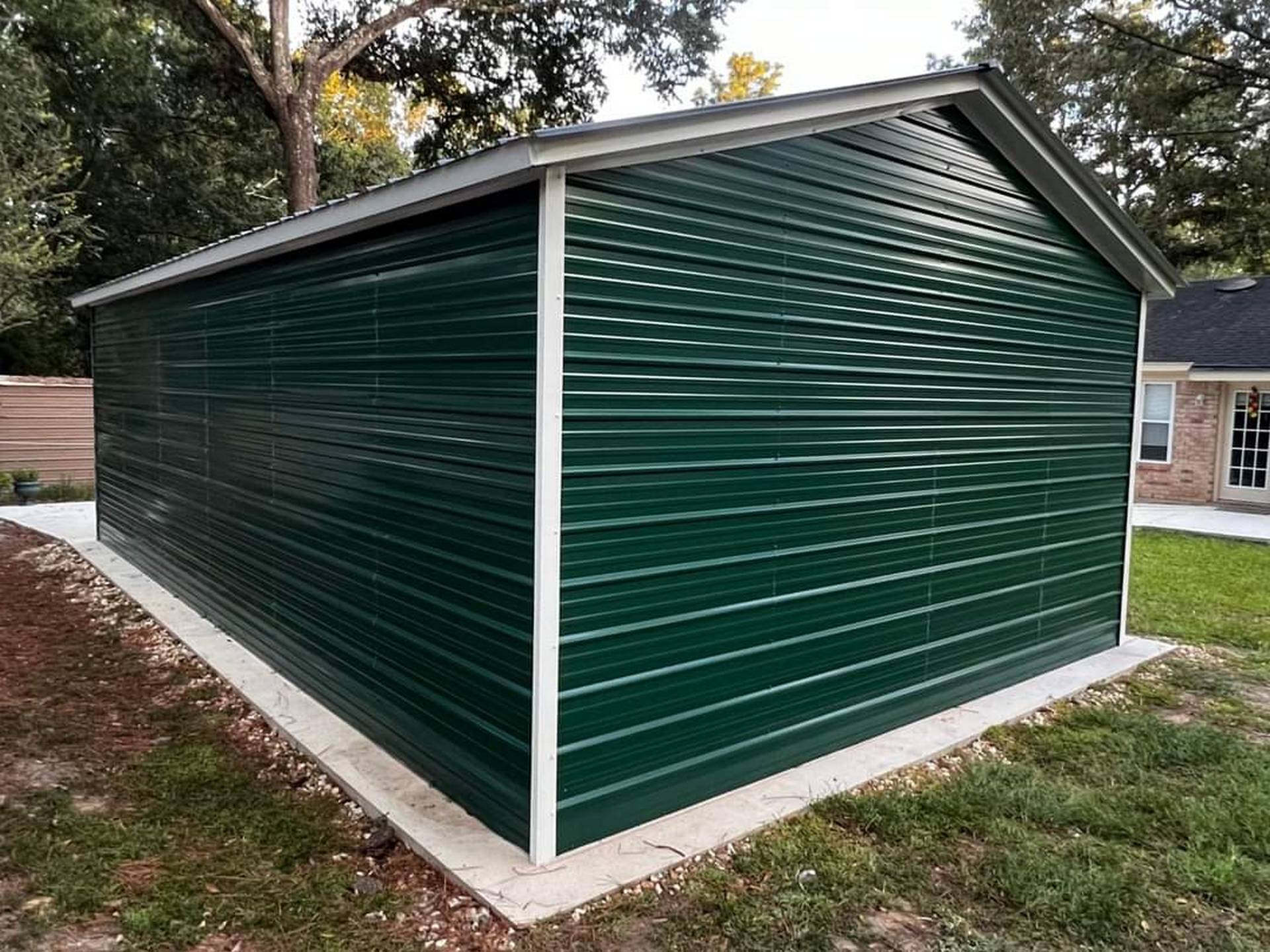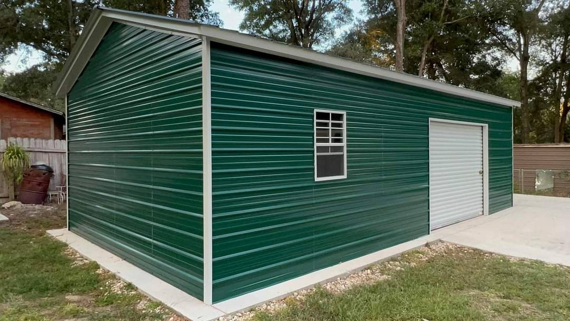 This workshop garage is the perfect setup measuring 18′ wide by 30′ long on a 9′ leg. The building features a 5’x7′ roll up door, two windows, and a walk in door.